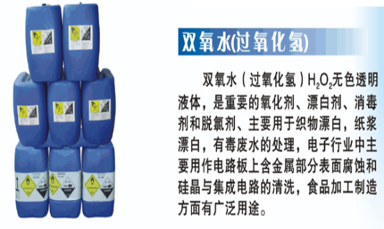 雙氧水是一種很強的氧化劑,具有還原性,在現實生活當中使用最多一般是雙氧水的水溶液。雙氧水根據其和水的比例不同,其名稱一般都冠以占有量的百分比,我們常見的有3%雙氧水、27.5%雙氧水、30%雙氧水、50%雙氧水、70%雙氧水等等。
